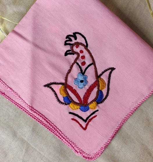 This handkerchief took me a lot of time, hard work and composure. It's done on a matic cloth using the technique of counted thread embroidery. This technique of embroidery involves counting of thread in fabric for every stitch. So, symmetrical stitches are generated. Cross stitch is one of the most common counted thread embroideries and I've implemented the same! I chose a muted tone for the background to make sure the design is clearly visible! The tassels at the edges gives it a stylish impression.